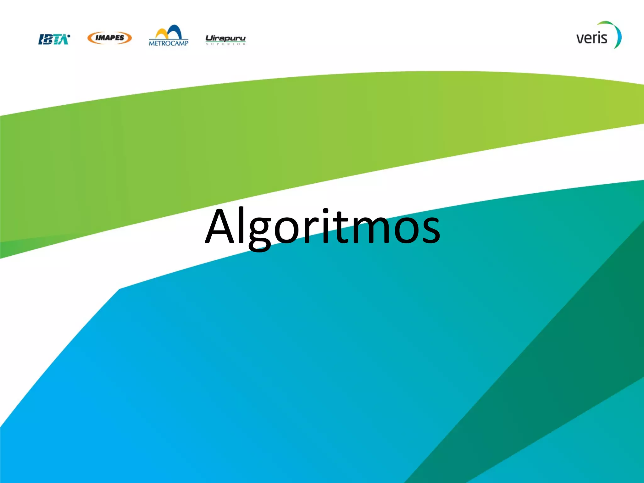 O documento discute algoritmos, definindo-os como sequências de passos para realizar tarefas. Apresenta formas de representar algoritmos como descrição narrativa, fluxograma e pseudocódigo. Explica conceitos como entrada, processamento e saída. Fornece exemplos de algoritmos em pseudocódigo e Java.
