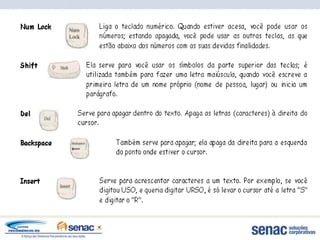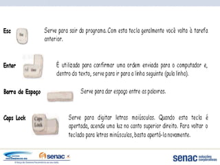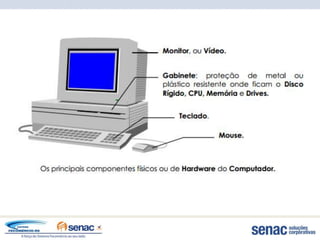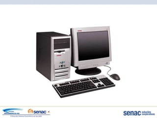 O documento fornece informações sobre computadores e seus componentes. Resume os principais tipos de computadores e dispositivos de entrada e saída de dados.