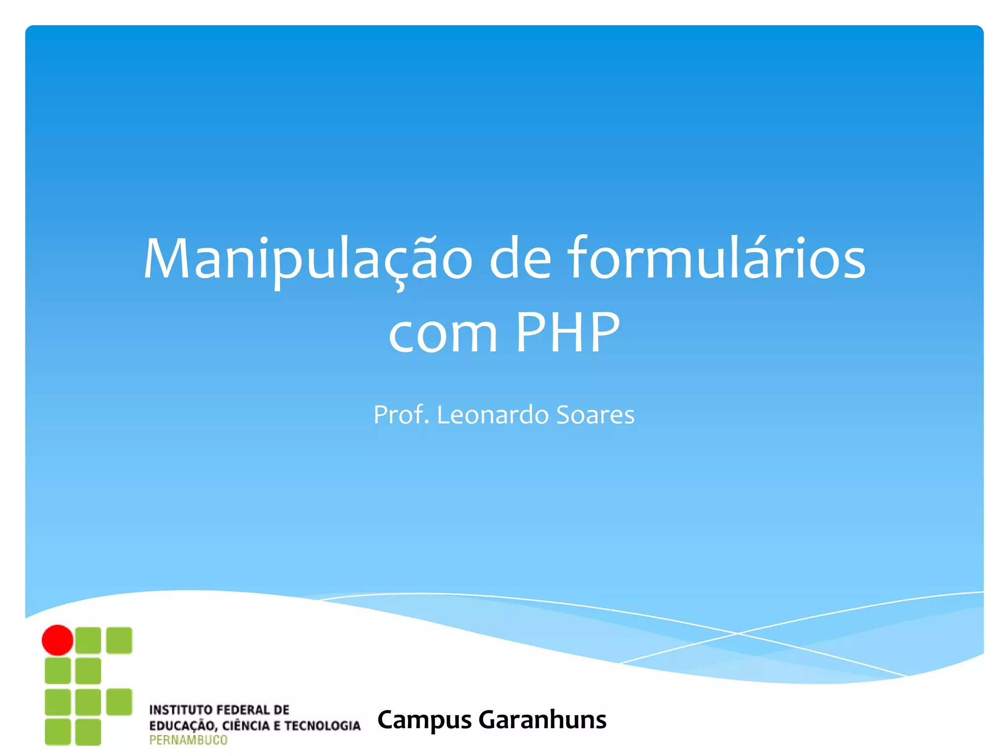 Manipulação de formulários com PHP. Uso de Cookies e Session com PHP.