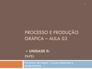 O documento discute os diferentes tipos e características do papel, incluindo gramatura, acabamento, formatos, textura e aplicações. É descrito que o papel é constituído de fibras de celulose e cargas minerais e suas propriedades dependem do processo de impressão e uso final. Diferentes tipos de papel como offset, cartolina e papel couchê são explicados.
