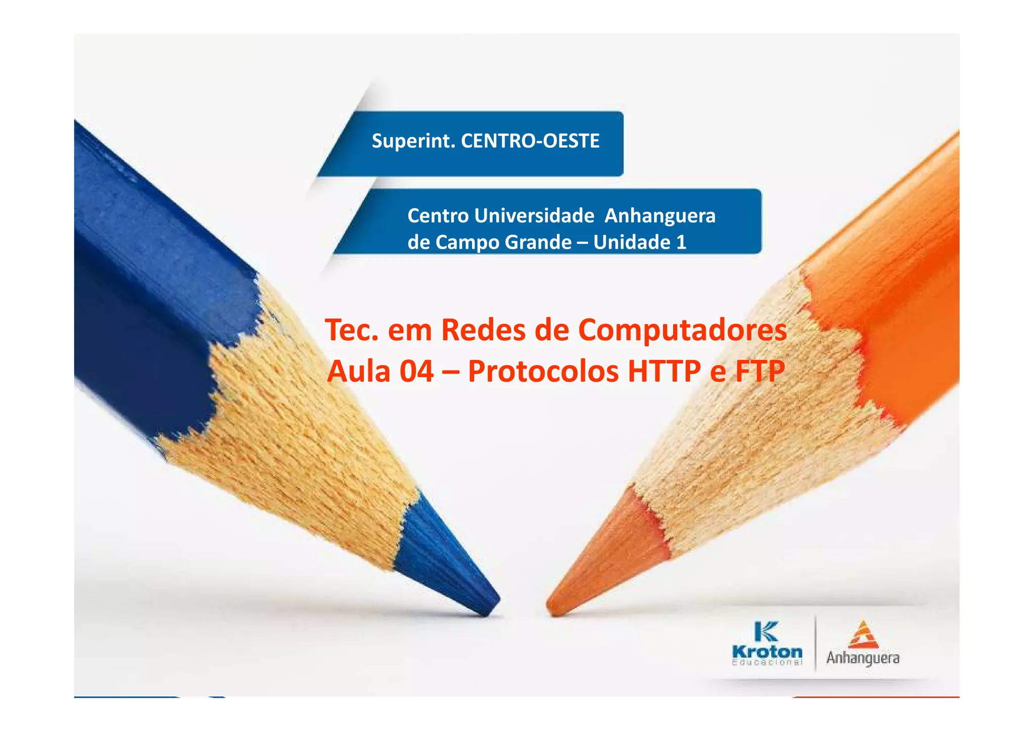 O documento discute os protocolos HTTP e FTP. Explica que o HTTP é usado para acessar dados na web através de requisições entre clientes e servidores, enquanto o FTP é usado para transferência de arquivos. Detalha os componentes, métodos, mensagens e transações dos protocolos.