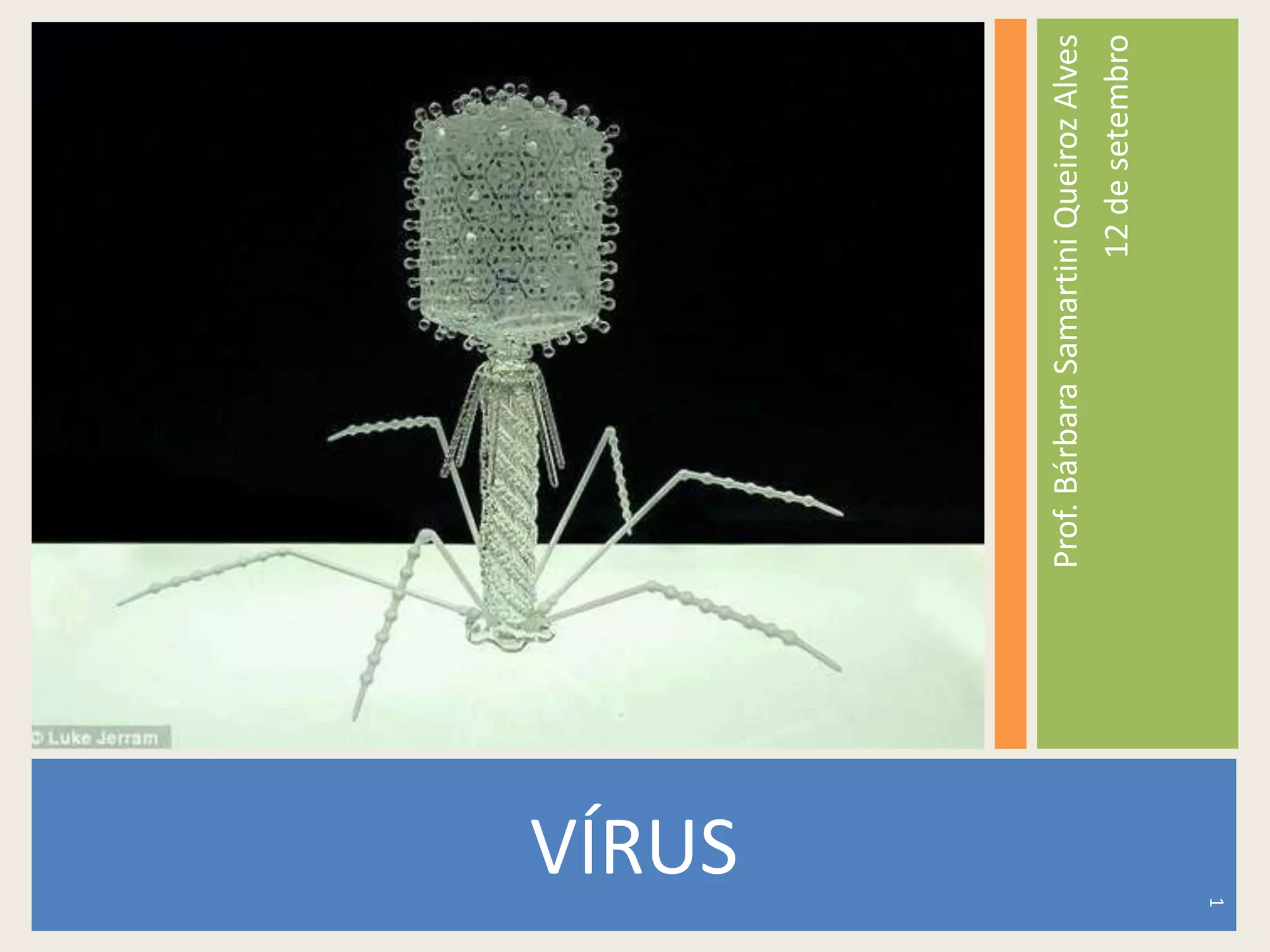 O documento discute os tipos de vírus, seus ciclos de replicação e estrutura. Apresenta os principais componentes orgânicos necessários para a vida e explica a estrutura e função das proteínas e ácidos nucleicos. Também aborda os retrovírus, que possuem RNA e enzima transcriptase reversa para produzir DNA.
