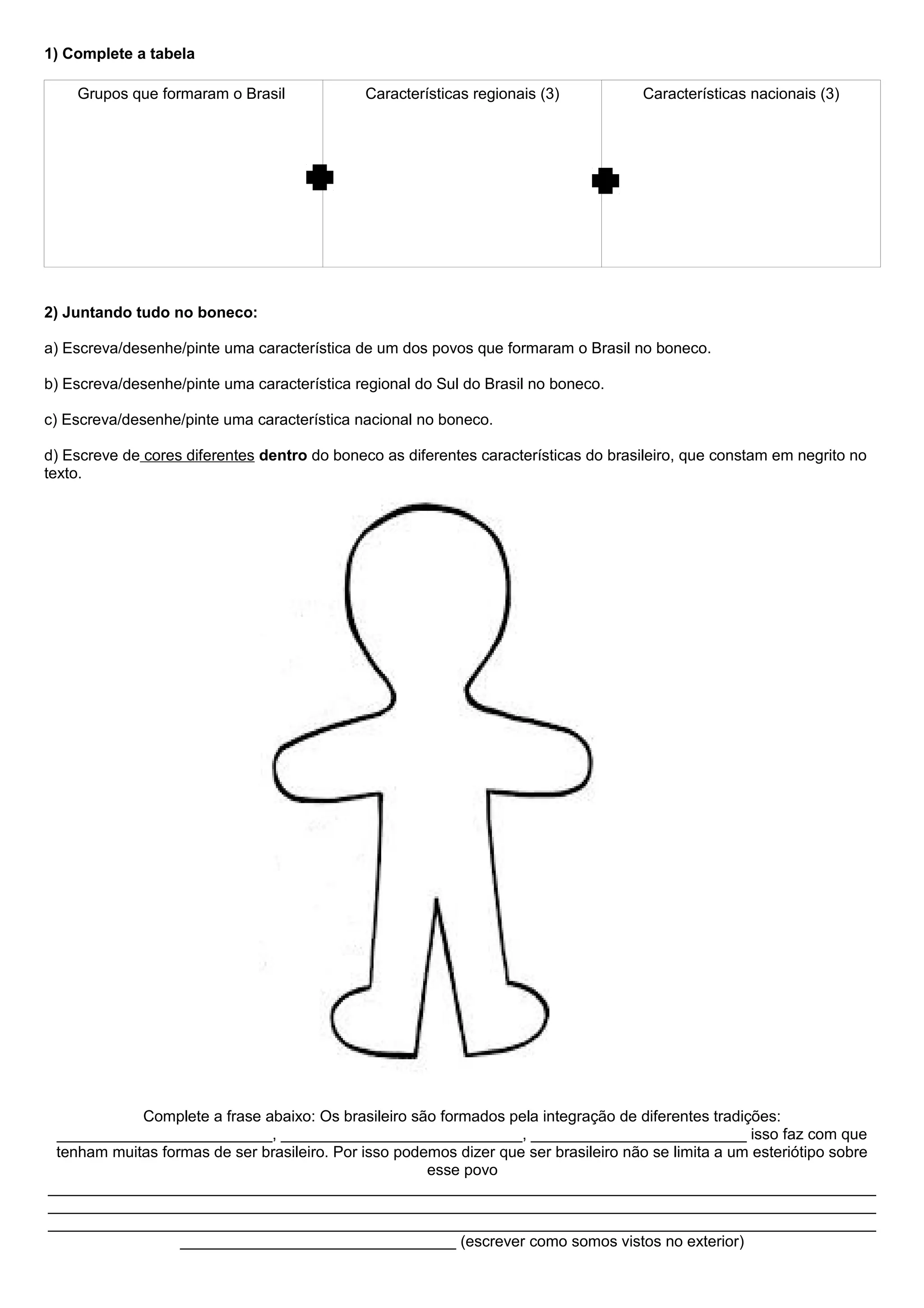 O documento discute como os brasileiros são formados por diferentes tradições, incluindo grupos culturais, características regionais e nacionais. Isso resulta em muitas formas de ser brasileiro, em vez de um único estereótipo. No entanto, tendemos a valorizar apenas certas características, como a alegria e o futebol, ignorando outras importantes como a resistência e solidariedade.