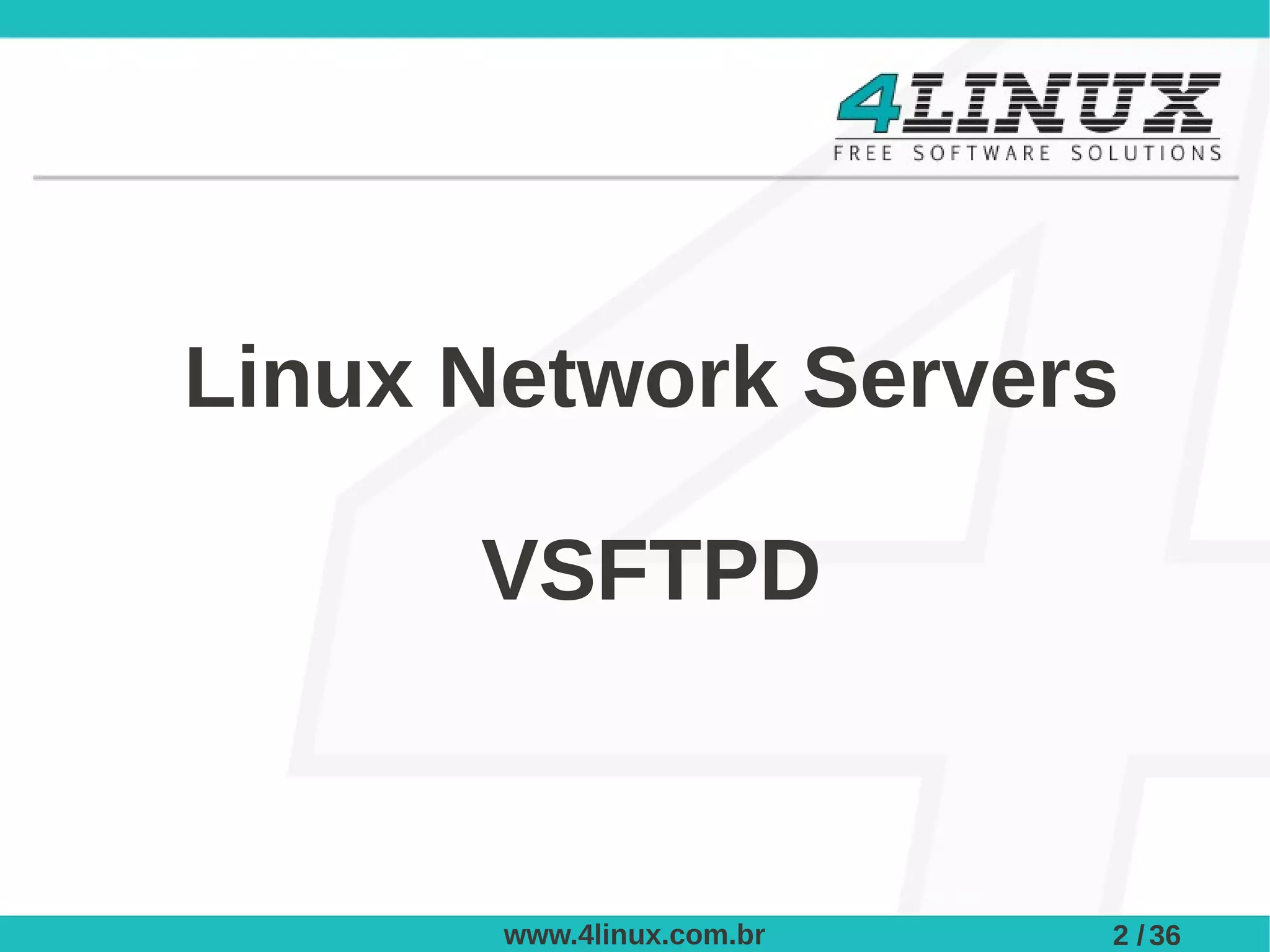 O documento discute o servidor FTP VSFTPD. Explica como configurar um servidor FTP no Linux para permitir que um usuário faça upload de arquivos para um site web hospedado no servidor, incluindo configurações como modo passivo, restrições de usuário e diretório, e mensagens exibidas para os usuários.