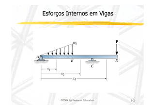 1. O documento discute cisalhamento transversal em vigas, apresentando a relação entre esforço cortante e tensão cisalhante.
