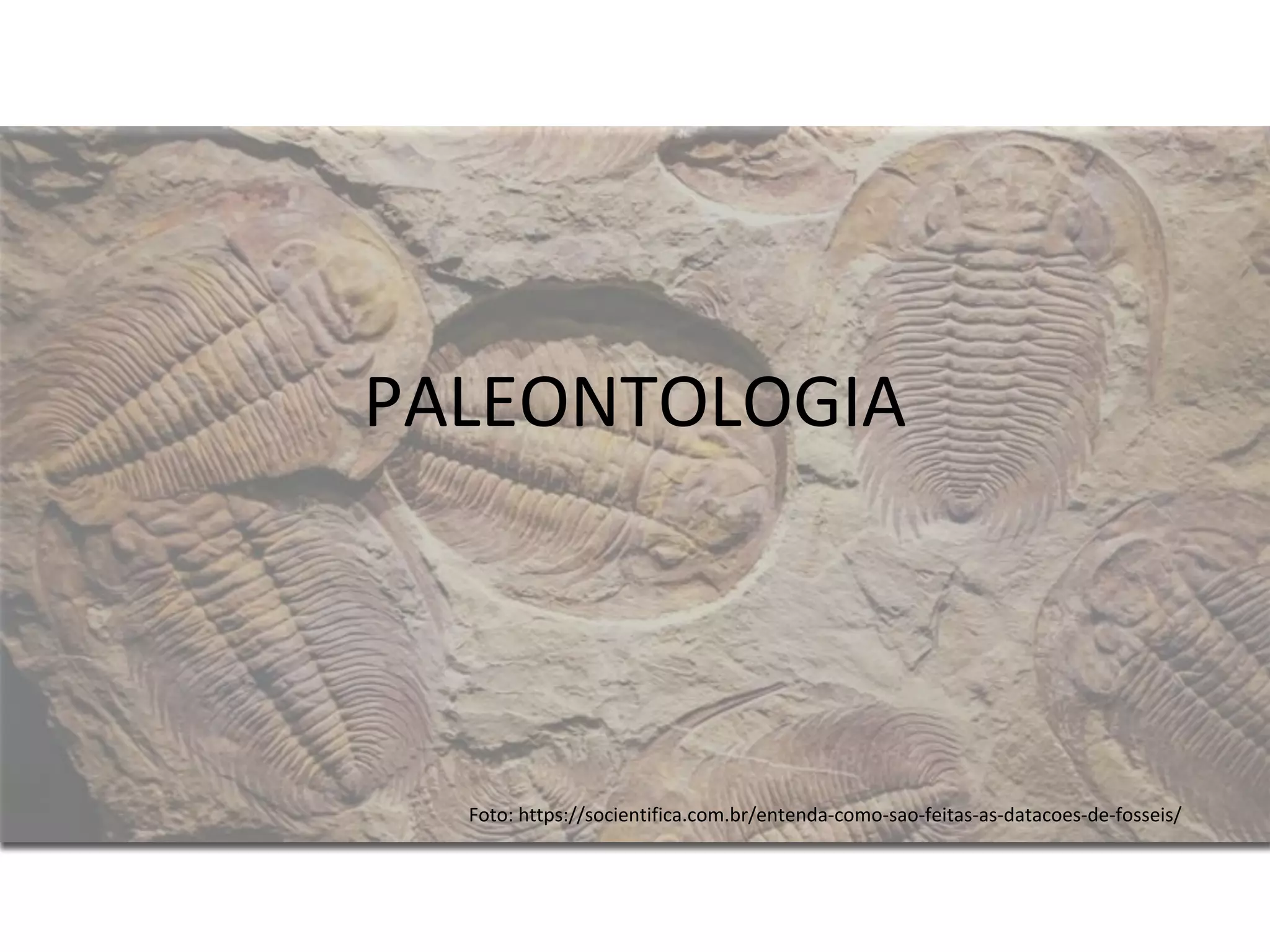 O documento discute os conceitos e objetivos da paleontologia, que estuda fósseis para entender a evolução biológica e a história geológica da Terra. Aborda os principais ramos da paleontologia como a paleobotânica, paleontologia de invertebrados e micropaleontologia. Também explica os processos de fossilização e preservação de fósseis.