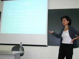 O documento fornece dicas para criar apresentações eletrônicas eficazes, enfatizando que os recursos audiovisuais devem ser usados com moderação para apoiar, e não substituir, a comunicação do orador. Algumas dicas importantes incluem usar poucas cores harmoniosas, fontes legíveis, texto conciso, imagens ilustrativas e manter o contato visual com a audiência.