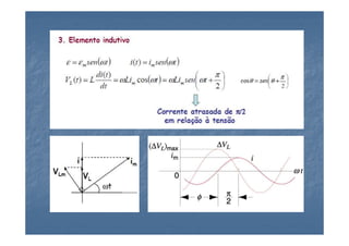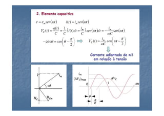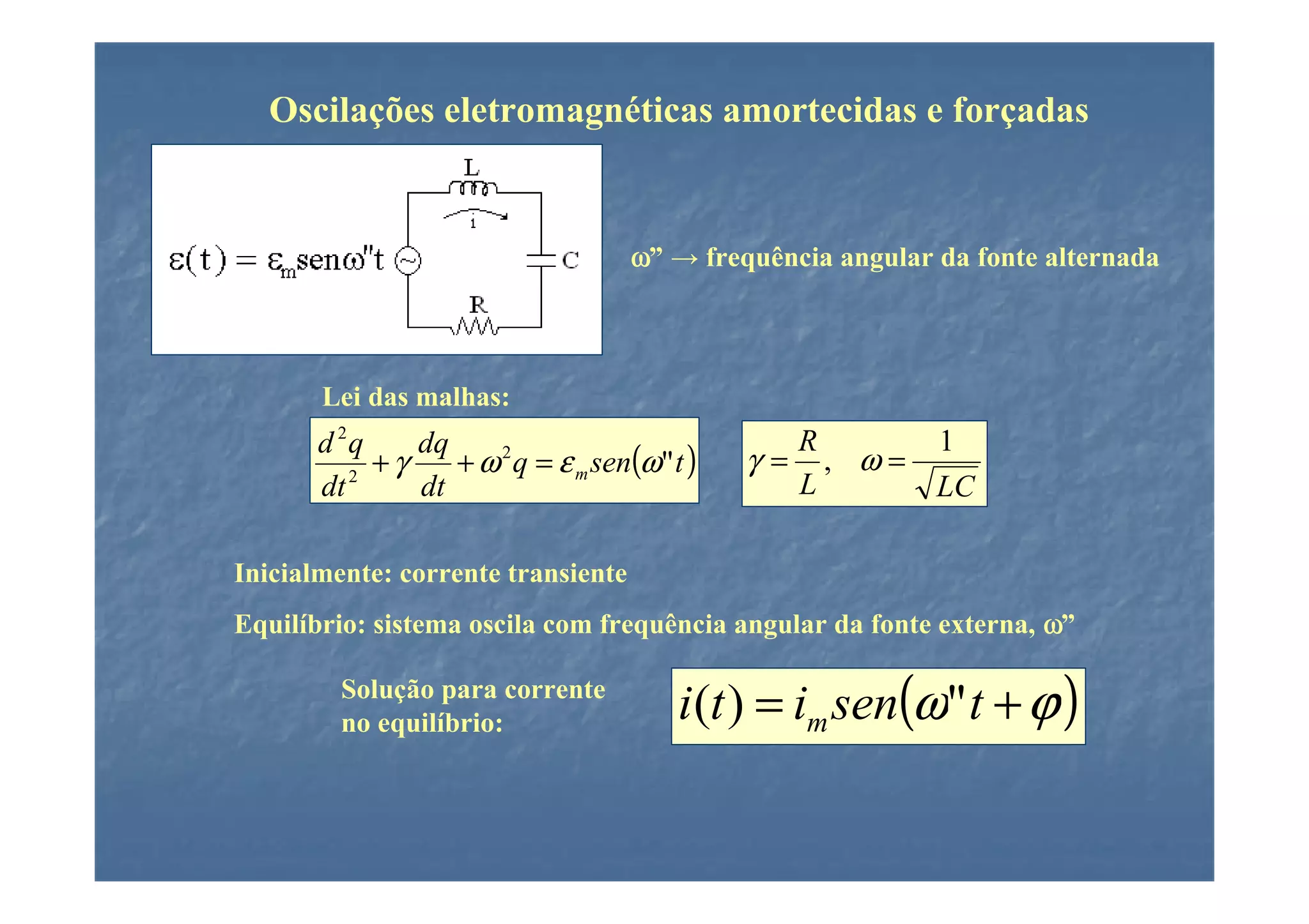 1) O documento descreve oscilações eletromagnéticas amortecidas e forçadas em um circuito RLC em série.
