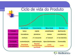 •Influência do CICLO DE VIDA DO PRODUTO