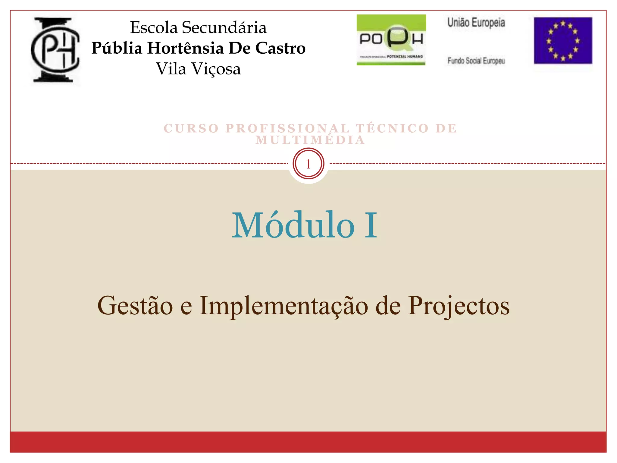 Este documento descreve as três fases e onze etapas do processo de gestão e implementação de projetos multimídia. A Fase 1 abrange a conceção do projeto e inclui definir objetivos, planear ações e controlar o progresso. A Fase 2 engloba o desenho e execução, com a descrição funcional e detalhada do produto e testes. A Fase 3 analisa e implementa o produto, avaliando-o e criando manuais e apoio para a sua utilização.