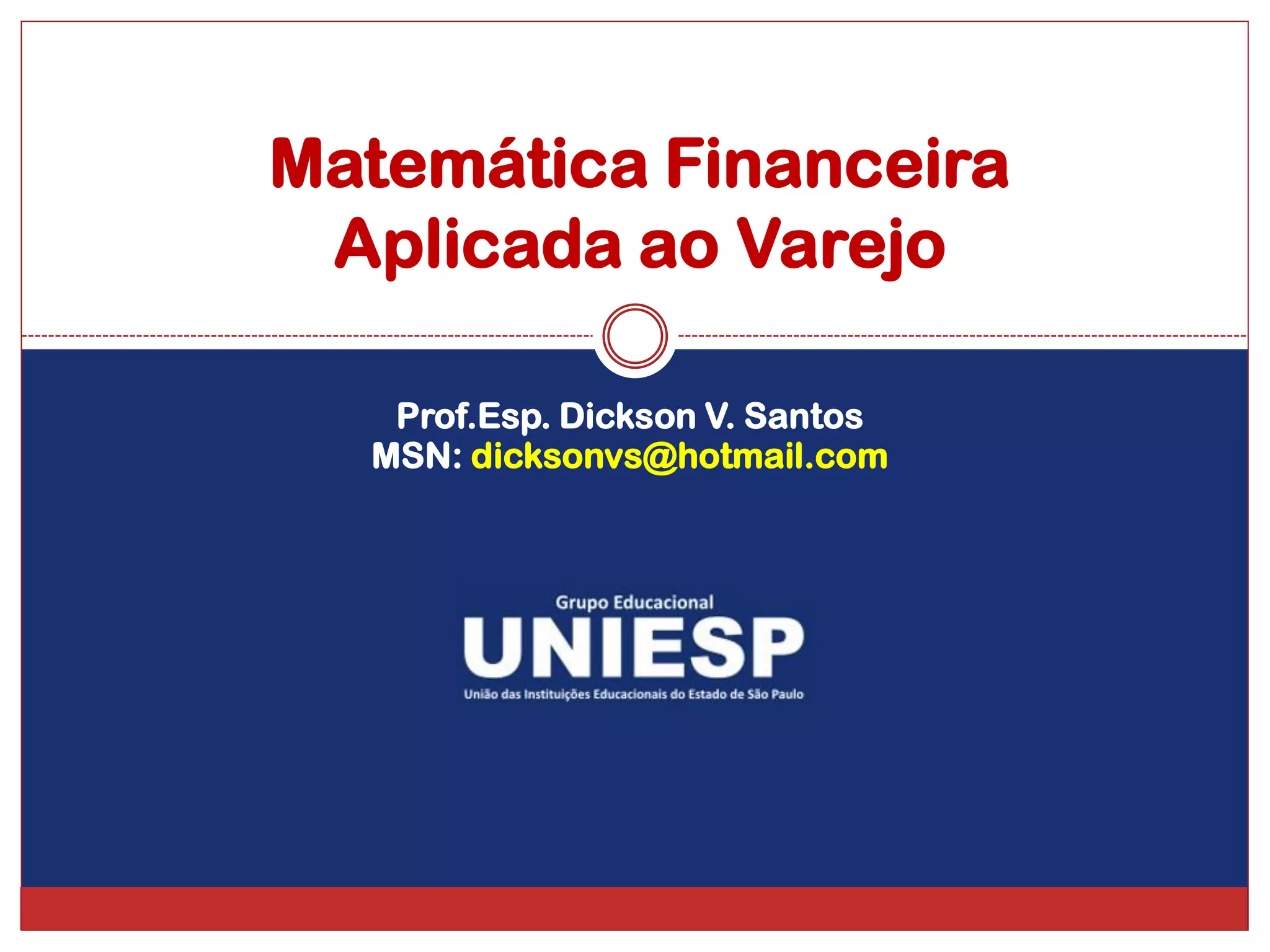 1) O documento discute conceitos de juros simples, descontos e períodos de capitalização aplicados a operações financeiras no varejo. 2) Explica como calcular valor presente, futuro, taxa de juros e períodos sob o regime de juros simples e como aplicar a fórmula de desconto. 3) Apresenta uma tabela para conversão de períodos que facilita os cálculos.