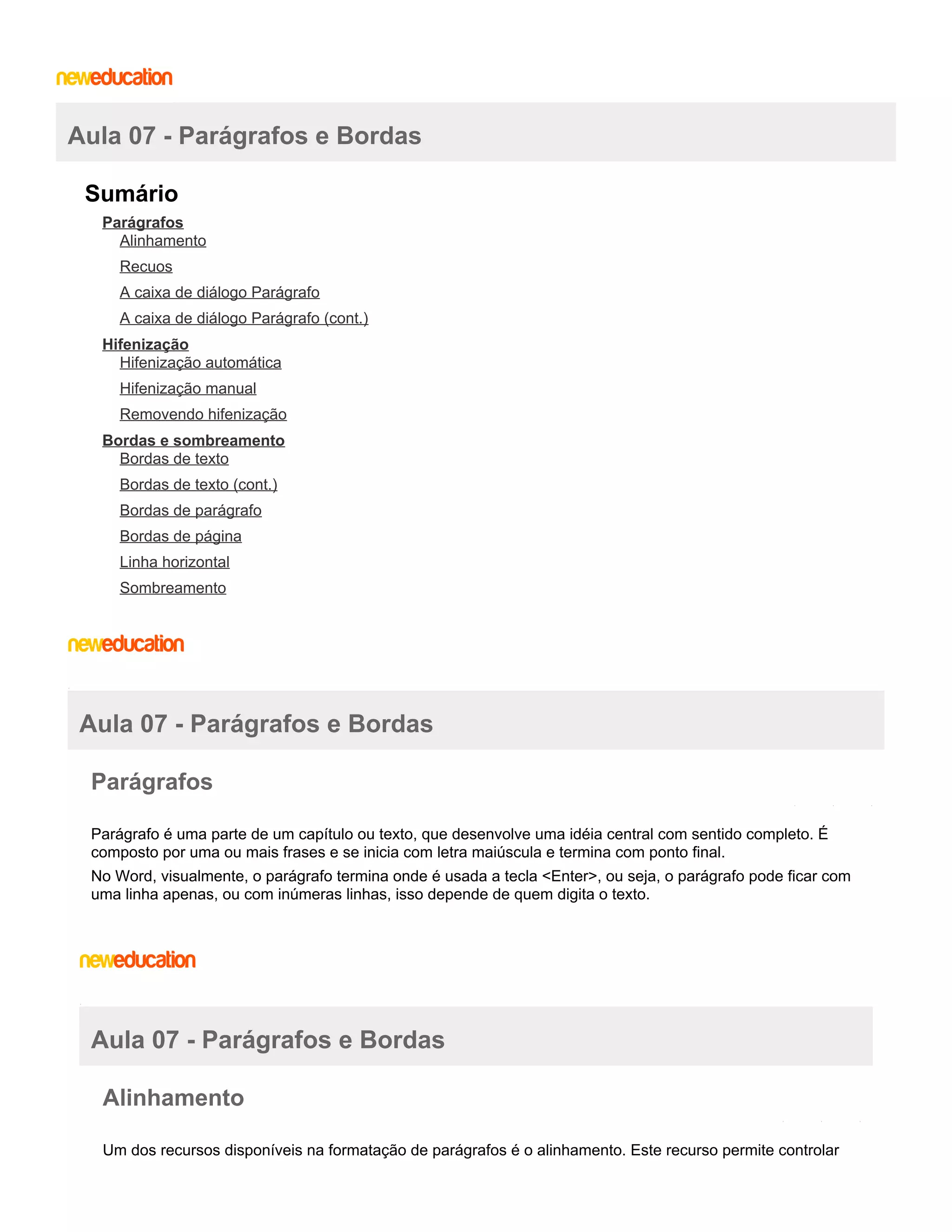 Aula 07 - Parágrafos e