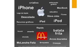 O documento discute o conceito de marca e patrimônio de marca. Define marca como um nome, símbolo ou desenho que identifica produtos ou empresas. Explica que patrimônio de marca é o valor financeiro e estratégico de uma marca para os consumidores e a empresa. Lista as dez marcas mais valiosas no Brasil em 2013 e descreve as principais dimensões do patrimônio de marca, incluindo lealdade, consciência, qualidade percebida e associações.