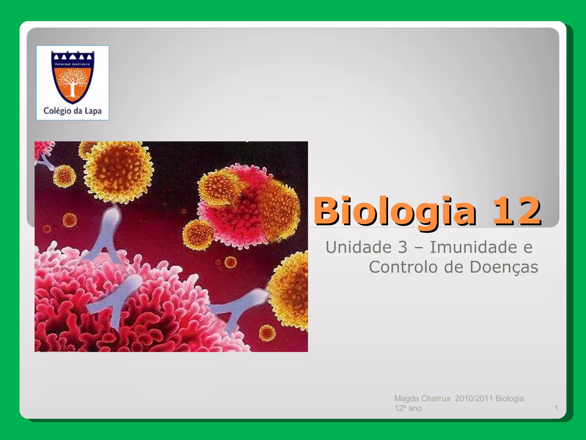 Este documento apresenta um resumo de uma unidade de biologia do 12o ano sobre imunidade e controle de doenças. Aborda tópicos como diagnóstico e terapêutica, anticorpos policlonais e monoclonais, hibridomas, aplicações biomédicas de anticorpos monoclonais, bioconversão e bioconservação.