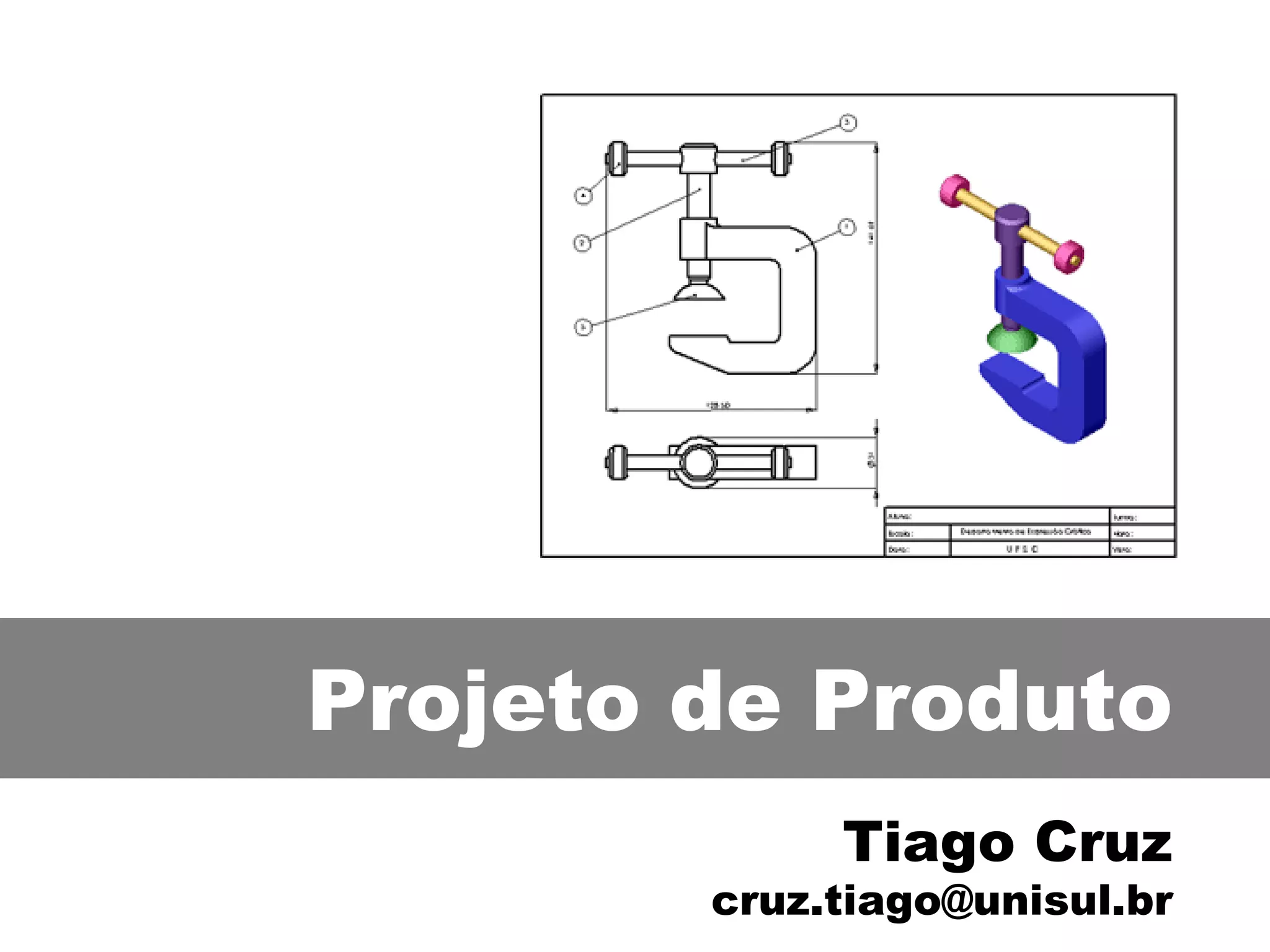 Este documento apresenta um modelo unificado para projeto de produto. Ele discute as etapas de formar duplas, escolher um problema público-alvo e requisitos, analisar portfólio e mercado concorrente, determinar requisitos do produto, e apresentar escopo e conceito inicial. Também cobre projeto detalhado, que inclui detalhamento de subsistemas, componentes e fornecedores, além de planejamento de fabricação e montagem.