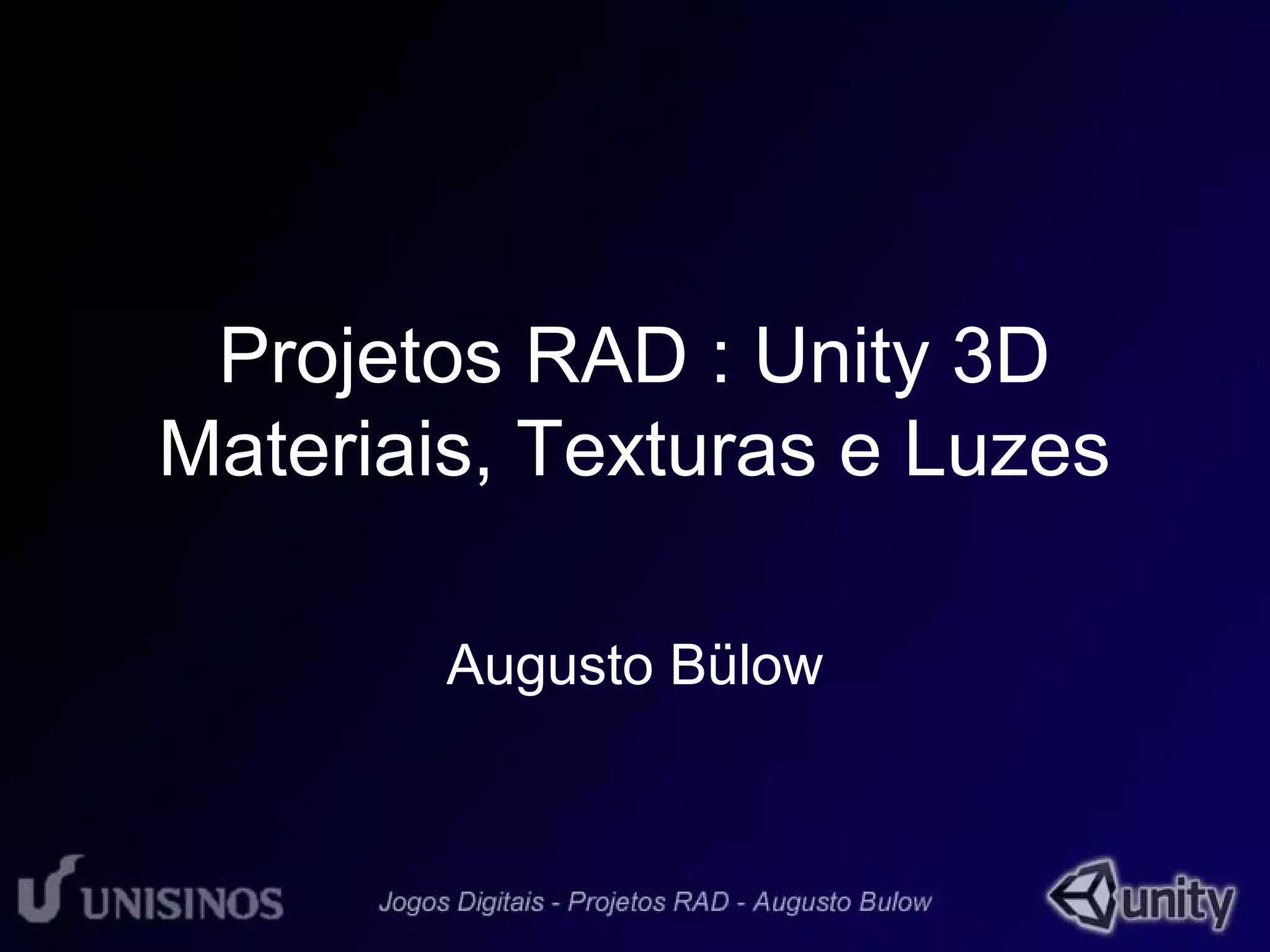 O documento discute conceitos importantes de materiais, texturas e luzes no Unity 3D, incluindo como importar e aplicar texturas em materiais, configurar parâmetros de repetição de textura, usar mapas de deslocamento para simular relevo, e definir diferentes tipos de luz como direcional, pontual e em faixa para iluminar cenas.