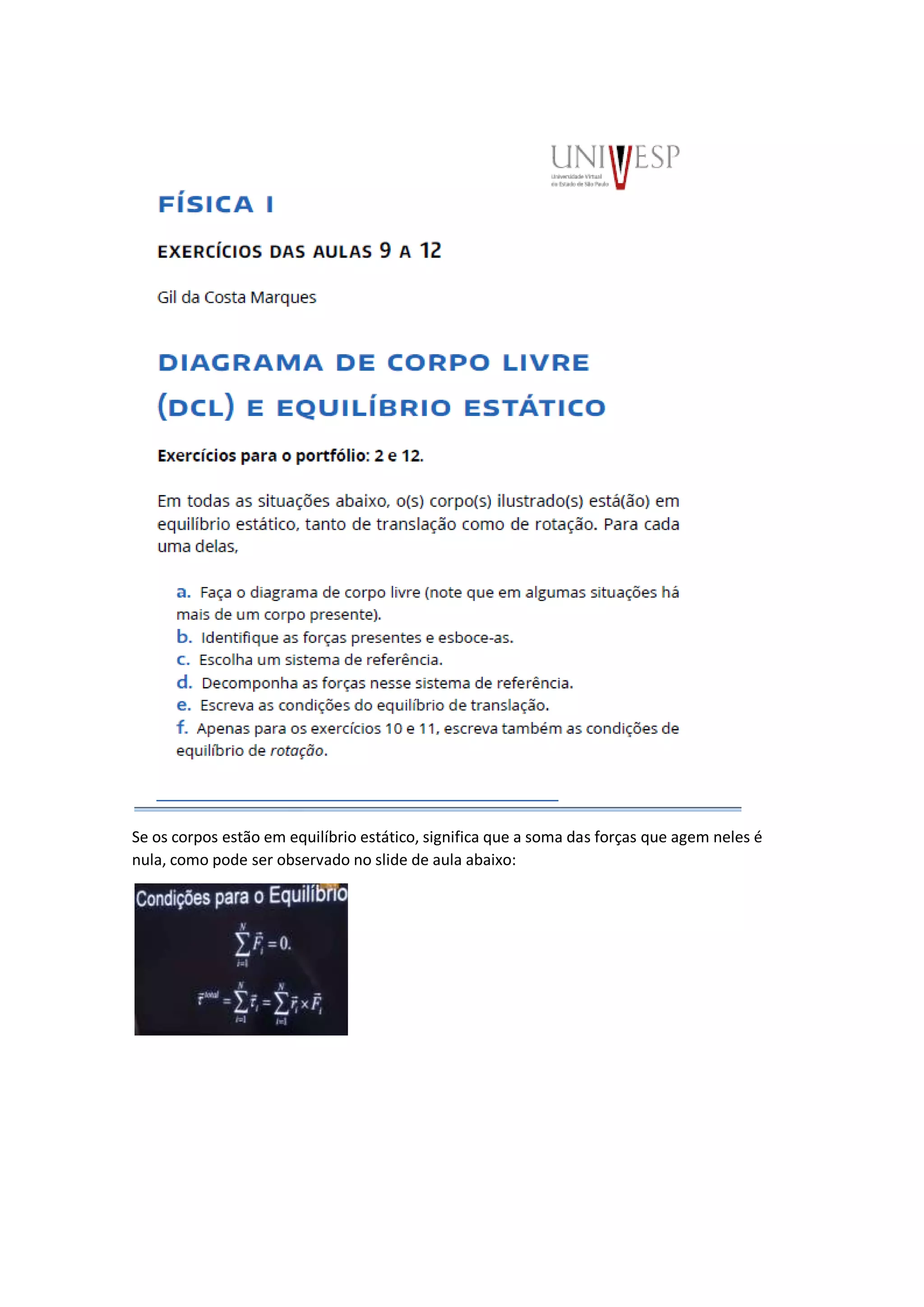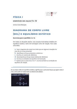 Equilíbrio estático ocorre quando a soma das forças que atuam em um corpo é nula. Isso significa que a força resultante é igual a zero e o corpo permanece parado ou em movimento uniforme sem aceleração.