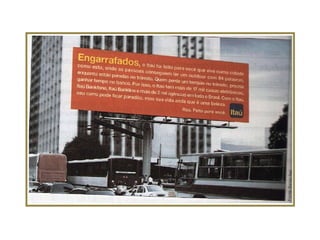 O documento discute diferentes tipos de anúncios publicitários, incluindo anúncios institucionais, de varejo e de oportunidade. Anúncios institucionais promovem a marca da empresa sem vender produtos diretamente, enquanto anúncios de varejo focam em vender produtos específicos. Anúncios de oportunidade aproveitam eventos atuais para promover uma marca de forma rápida e oportuna.