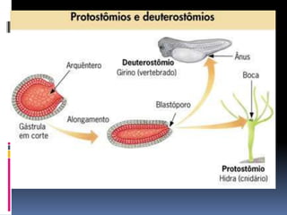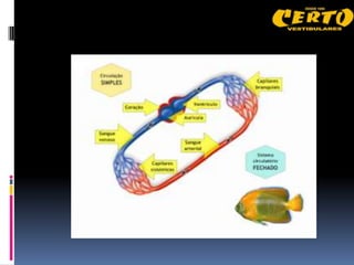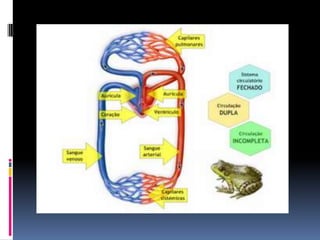O documento resume as principais características de moluscos, anelídeos, artrópodes, equinodermas, cordados, peixes, anfíbios, répteis e aves. Inclui tópicos sobre classificação, sistemas respiratório, circulatório e excretor de cada grupo.