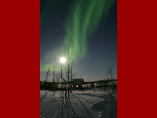 As auroras boreais e austrais são fenômenos magnéticos que ocorrem nas regiões polares quando partículas eletrostáticas emitidas pelo Sol são desviadas pelo campo magnético da Terra, gerando padrões coloridos no céu noturno. A música "O Fortuna" faz parte de um manuscrito medieval com poemas e canções seculares encontrados na Baviera no século 13.
