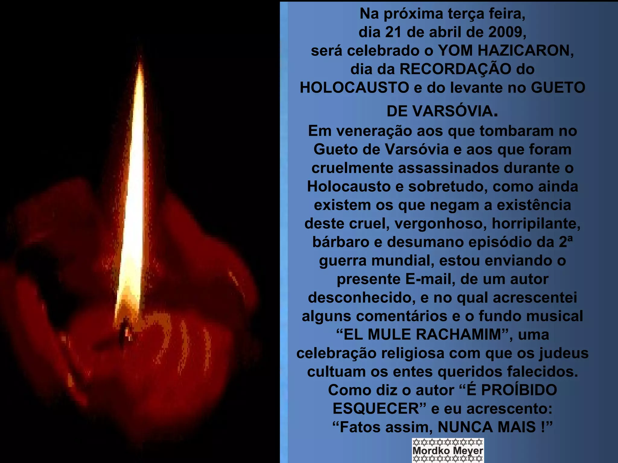 O documento descreve o dia da Recordação do Holocausto e do levante no Gueto de Varsóvia, destacando os horrores do Holocausto, como os campos de concentração de Auschwitz, onde mais de 1,5 milhão de judeus foram mortos em câmaras de gás, e os esforços para nunca esquecer os crimes cometidos e impedir que tragédias como essa se repitam.
