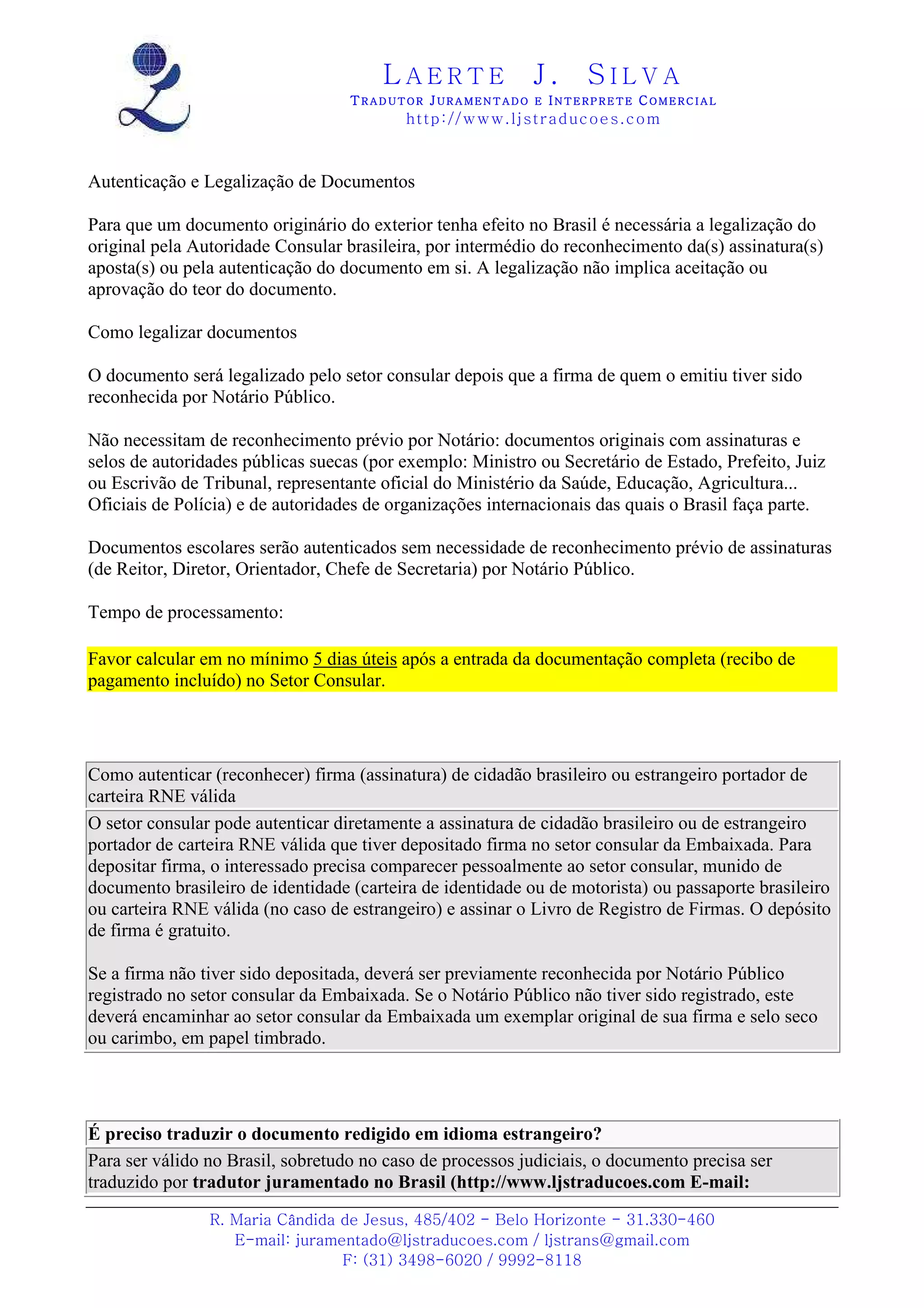 O documento explica os requisitos e procedimentos para a autenticação e legalização de documentos no exterior para que tenham validade no Brasil, incluindo a necessidade de reconhecimento por notário público, tradução por tradutor juramentado e informações necessárias em faturas comerciais.
