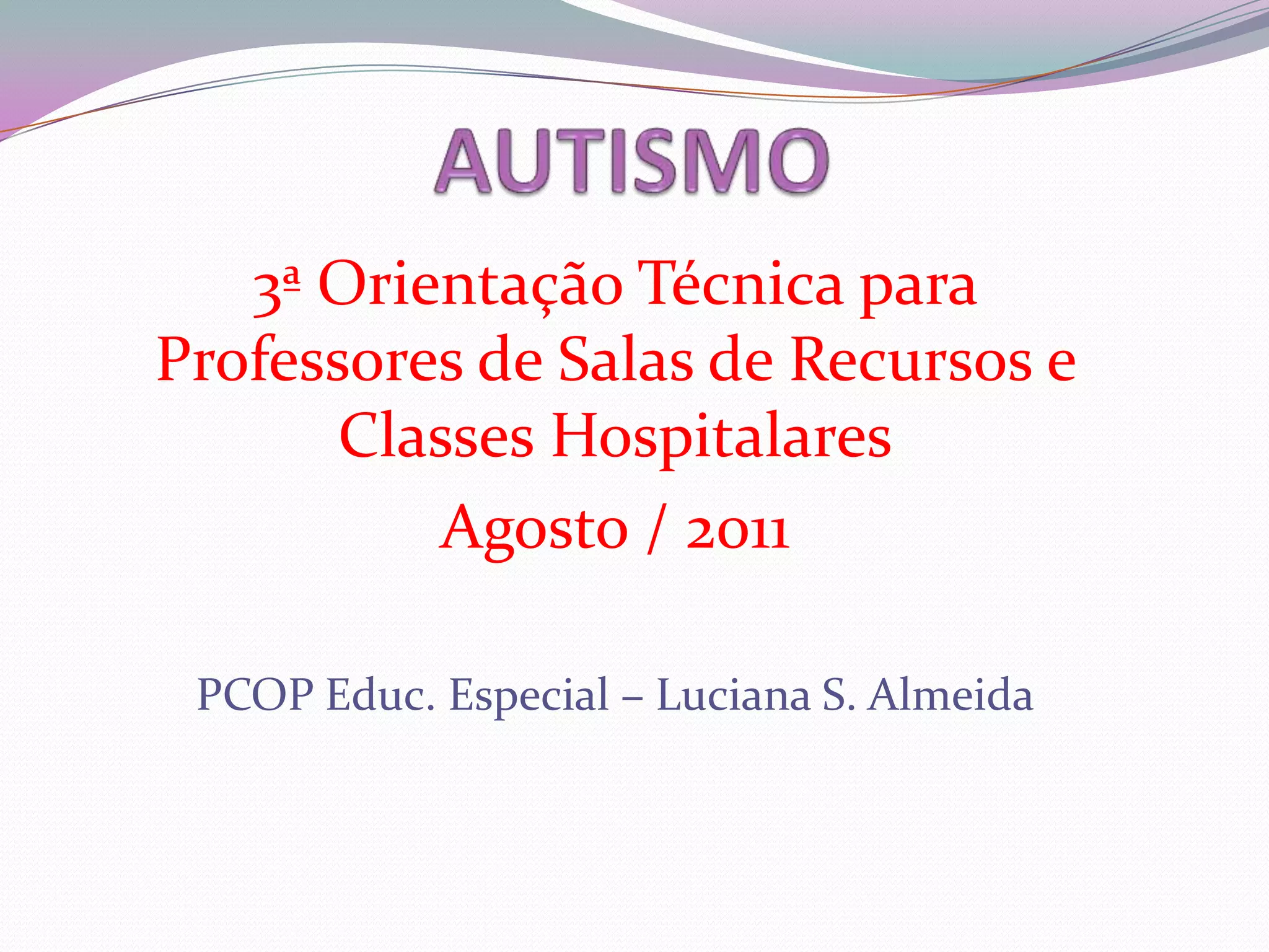 Este documento discute o autismo, fornecendo definições, sinais e sintomas, diagnóstico diferencial e tratamento. Ele explica que o autismo é caracterizado por alterações na comunicação, interação social e imaginação, podendo variar de retardo mental a inteligência acima da média. Também discute a incidência crescente do autismo e transtornos relacionados como a Síndrome de Asperger e Síndrome de Rett.