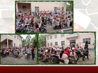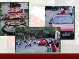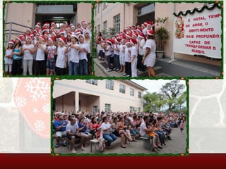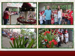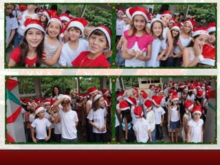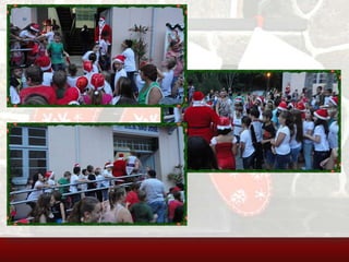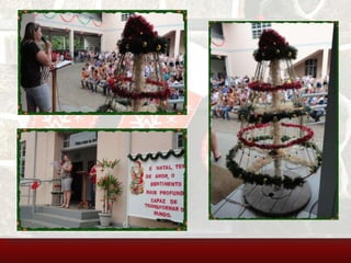O documento lista as canções natalinas e os professores responsáveis pelos ensaios de cada turma na escola. A Professora Dalvana ensinou músicas como "É Natal", "Todo Dia é Dia de Natal" e "A Montanha" para diferentes turmas, enquanto professores como Rosili, Catiana, Suzana, Sandra, Cesar, Franciele e Elisabet auxiliaram nos ensaios.