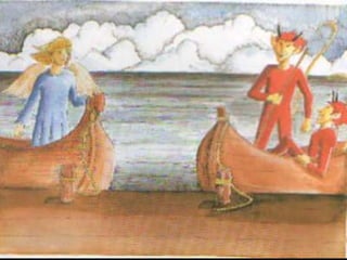 O documento resume o Auto da Barca do Inferno de Gil Vicente, apresentando os principais personagens e suas alegorias na obra. Cada personagem representa uma classe social e é julgada pelo anjo e diabo, que a acusam de pecados cometidos na vida, e tentam se defender para evitar o inferno. A obra usa a alegoria da barca do inferno para criticar problemas sociais da época como a corrupção e a hipocrisia.