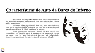 A peça teatral "Auto da Barca do Inferno" critica o estilo de vida mundano dos membros do clero através da personagem do Frade. O Frade entra em cena dançando e com sua amante Florença, acreditando que seus salmos garantiriam seu lugar no céu. No entanto, ele é condenado ao Inferno por quebrar seus votos de castidade e pobreza ao viver uma vida de prazeres e luxos.