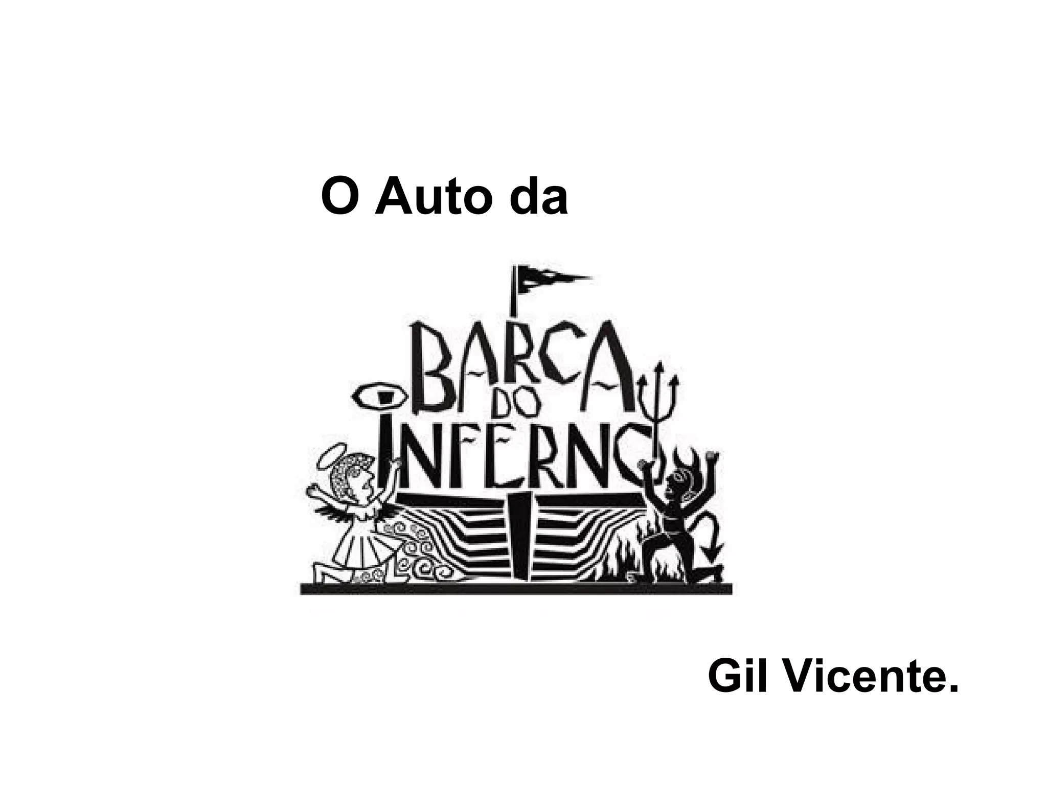 O Auto da Barca do Inferno apresenta um diálogo entre o diabo e vários personagens que acabaram de morrer, tentando convencê-los a embarcar em sua barca rumo ao inferno. Um anjo tenta persuadir alguns personagens a irem para a barca do paraíso. A peça critica a hipocrisia e os vícios através das interações entre os personagens e os diálogos com o diabo e o anjo.
