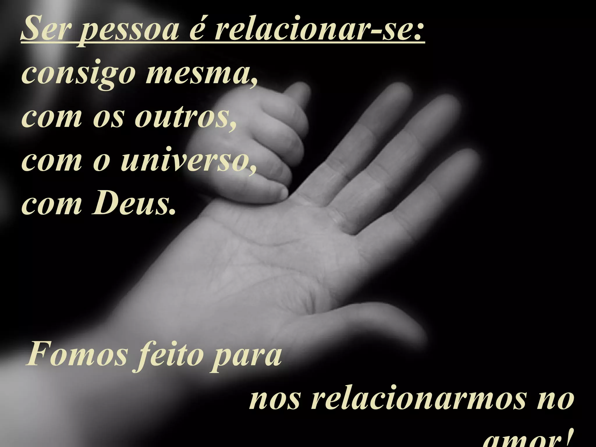 O documento discute a natureza humana como um ser trinitário composto de corpo, mente e espírito criado para se relacionar com si mesmo, com os outros, com o universo e com Deus. Também enfatiza a importância da autoestima e do relacionamento positivo consigo mesmo e com os outros para o desenvolvimento pessoal.