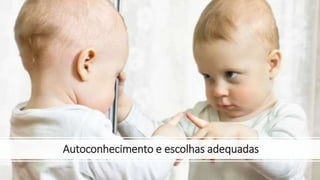 O documento discute a importância do autoconhecimento para tomar decisões adequadas. Ele explica que quanto mais nos conhecemos, maiores são as chances de acertar. Também apresenta exemplos bíblicos como João Batista, que se conhecia bem, e incentiva o leitor a fazer um questionário de autoavaliação para identificar suas forças, fraquezas, oportunidades e ameaças. Com base nisso, o leitor poderá tomar melhores decisões para seu crescimento.