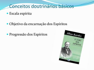 O documento discute conceitos espíritas como a escala espírita e a progressão dos espíritos. Também aborda a luta contra as paixões primitivas e a necessidade de nos conhecermos para superar nossas más inclinações por meio do autodescobrimento. Finalmente, apresenta a consciência como campo de batalha entre virtudes e paixões e exemplos bíblicos de autodescobrimento.
