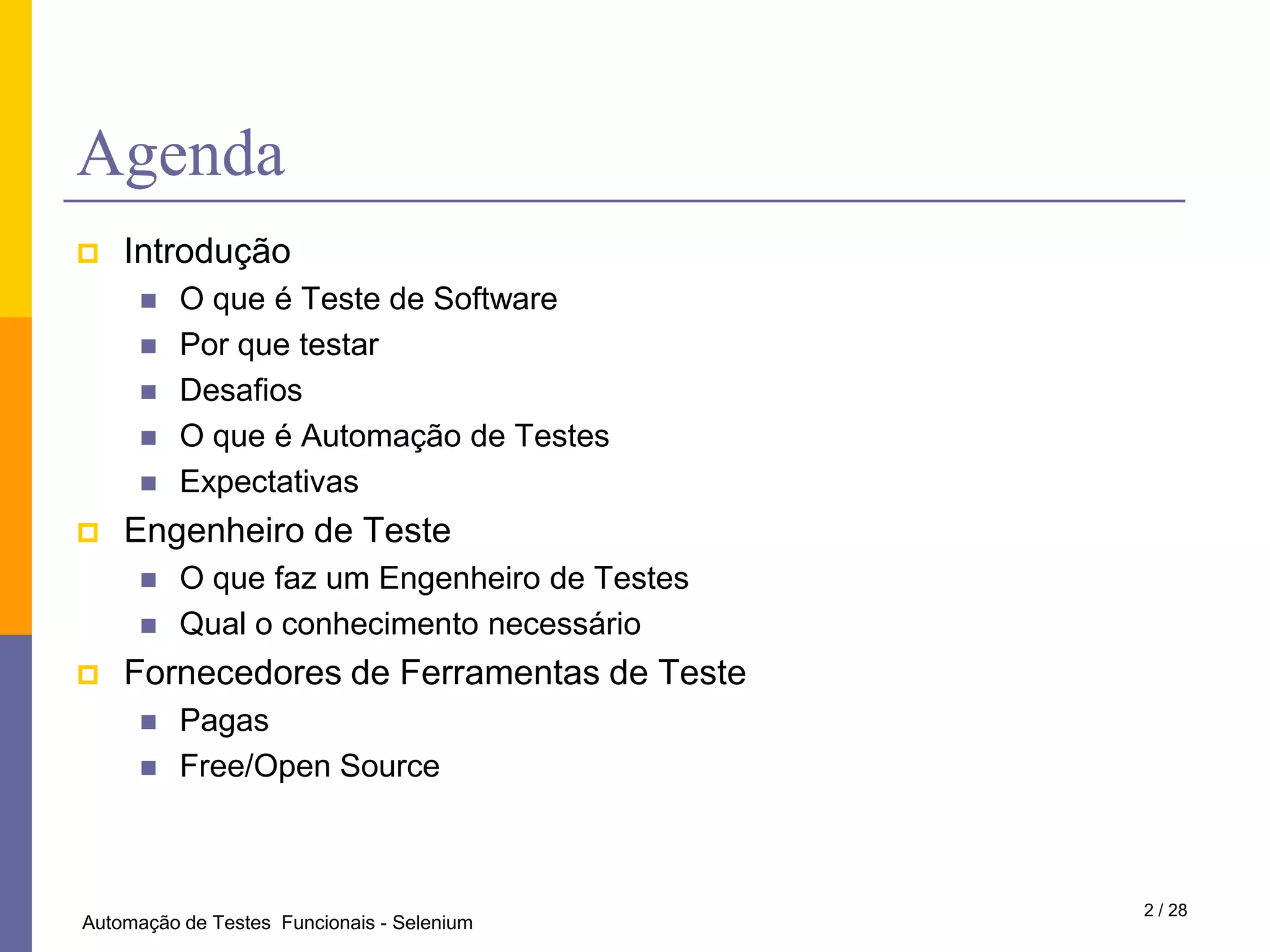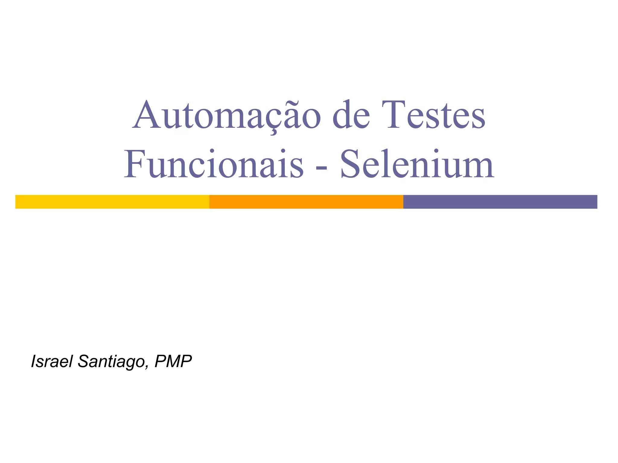 O documento fornece uma introdução à automação de testes funcionais com Selenium, discutindo: