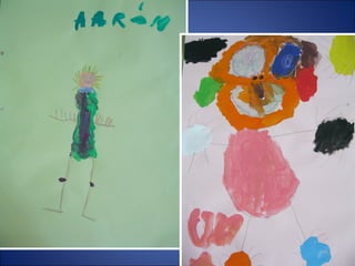 Joan Miró pintou vários autorretratos. Ele e outros colegas pegaram pincéis e também fizeram suas próprias pinturas. Juntos eles criaram um belo mural com contribuições de todos.