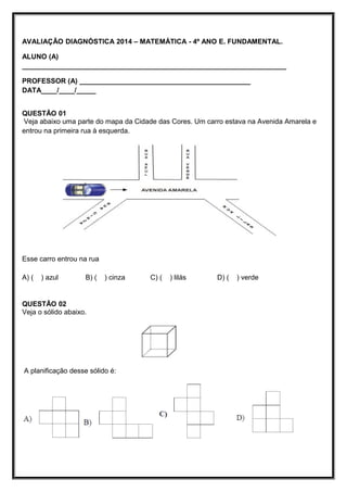 AVALIAÇÃO DIAGNÓSTICA 2014– MATEMÁTICA - 4º ANO E. FUNDAMENTAL.
