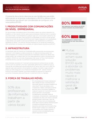 2. As empresas estão adotando políticas de BYOD para aproveitar os benefícios de maior produtividade e mobilidade, com 80% das empresas relatando aumento da produtividade com BYOD.