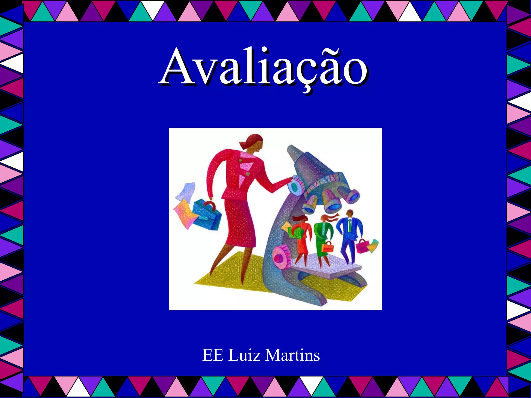 O documento discute diferentes abordagens para a avaliação de alunos. A avaliação tradicional é criticada por se concentrar em notas e classificação ao invés de objetivos de aprendizagem. A avaliação formativa é proposta como alternativa, focando no progresso individual de cada aluno ao longo do tempo. O documento também discute os propósitos da avaliação, como conhecer melhor os alunos e adequar o ensino a suas necessidades.