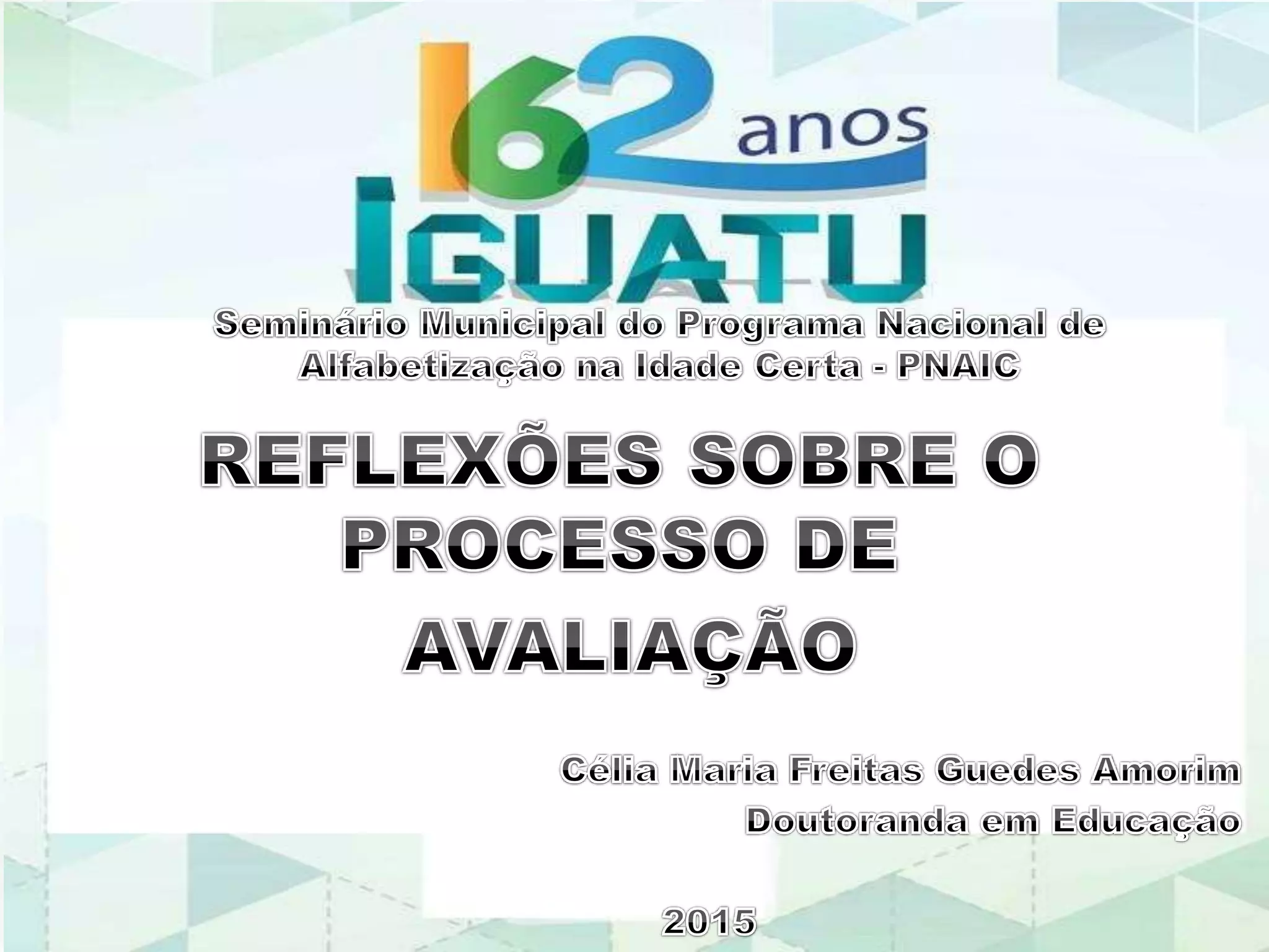 O documento discute a importância da avaliação no processo de alfabetização de forma formativa e contínua, visando o desenvolvimento integral da criança. Também ressalta a necessidade de se levar em conta a diversidade dos alunos, o tempo de aprendizagem de cada um e de se evitar julgamentos punitivos.
