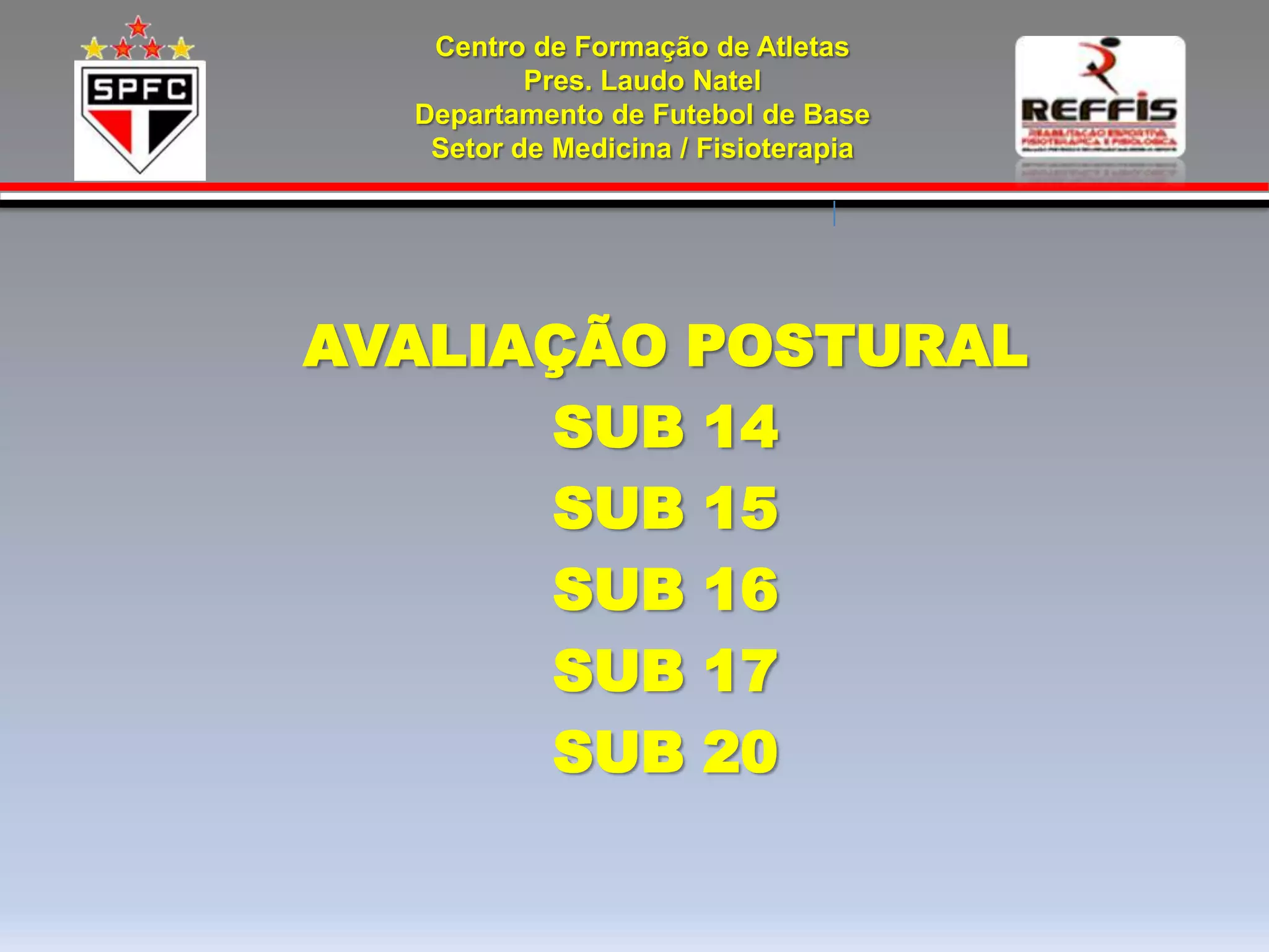 O documento descreve um protocolo de avaliação postural para atletas das categorias de base de um centro de formação de atletas, com o objetivo de identificar alterações posturais e encurtamentos musculares. O protocolo inclui avaliação postural estática em diferentes perfis, teste de flexibilidade e análise funcional da flexão do tronco.