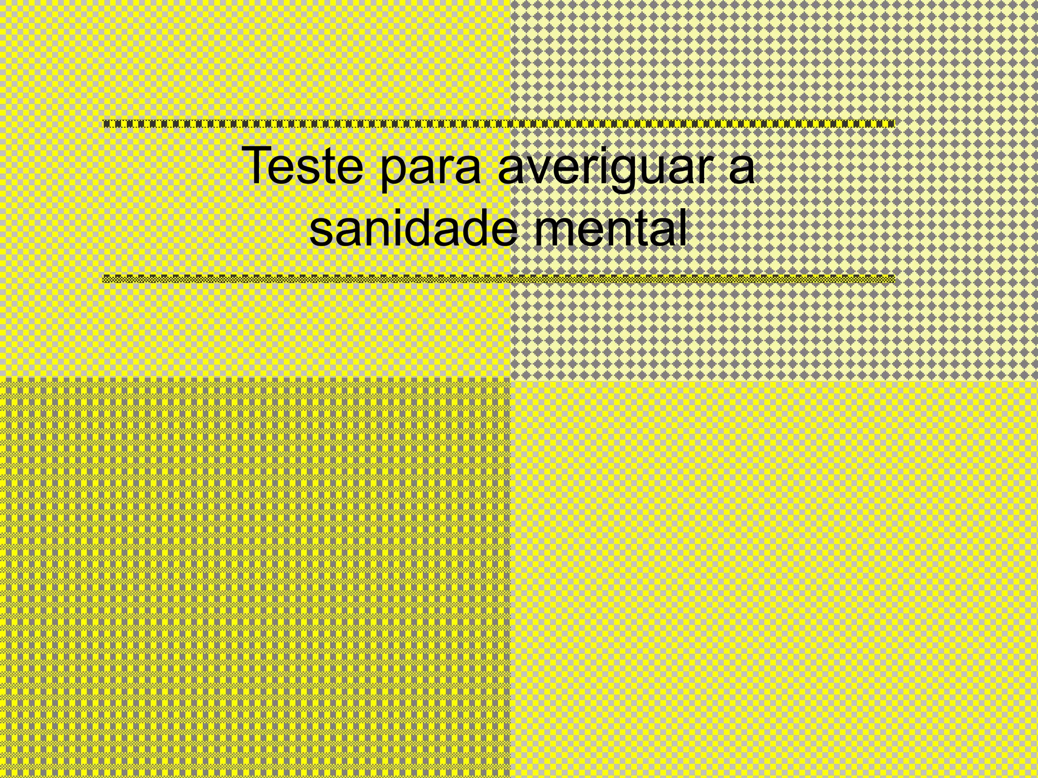 1) O documento apresenta um teste de sanidade mental com perguntas sobre o que se põe numa torradeira, a soletração de "meite", e o que bebem as vacas;