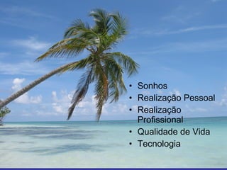 O documento discute os sonhos de José Antonio Ramalho de se tornar piloto de Fórmula 1 e piloto, e como a tecnologia pode ajudar as pessoas a serem mais produtivas no trabalho e ter mais tempo livre para lazer e família, de acordo com Bill Gates e Andy Grove.