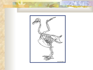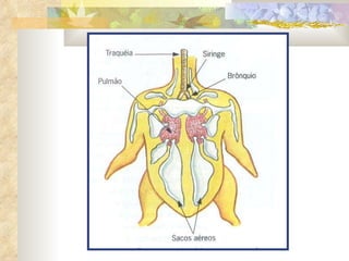 As aves evoluíram a partir de répteis há cerca de 150 milhões de anos. Elas apresentam penas, bicos sem dentes, esqueleto leve e ossificado, coração de quatro câmaras, respiração pulmonar e são homeotérmicas. Possuem diversas adaptações ao voo como ossos pneumáticos, sacos aéreos, corpo aerodinâmico e ausência de bexiga e parte do intestino.