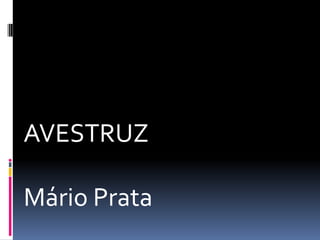 O documento discute as características e hábitos do avestruz, incluindo onde vive, se é um animal de estimação, e curiosidades sobre sua reprodução e alimentação. Ele também aborda o uso do avestruz em uma crônica que fala sobre as desvantagens de ter o animal em casa.