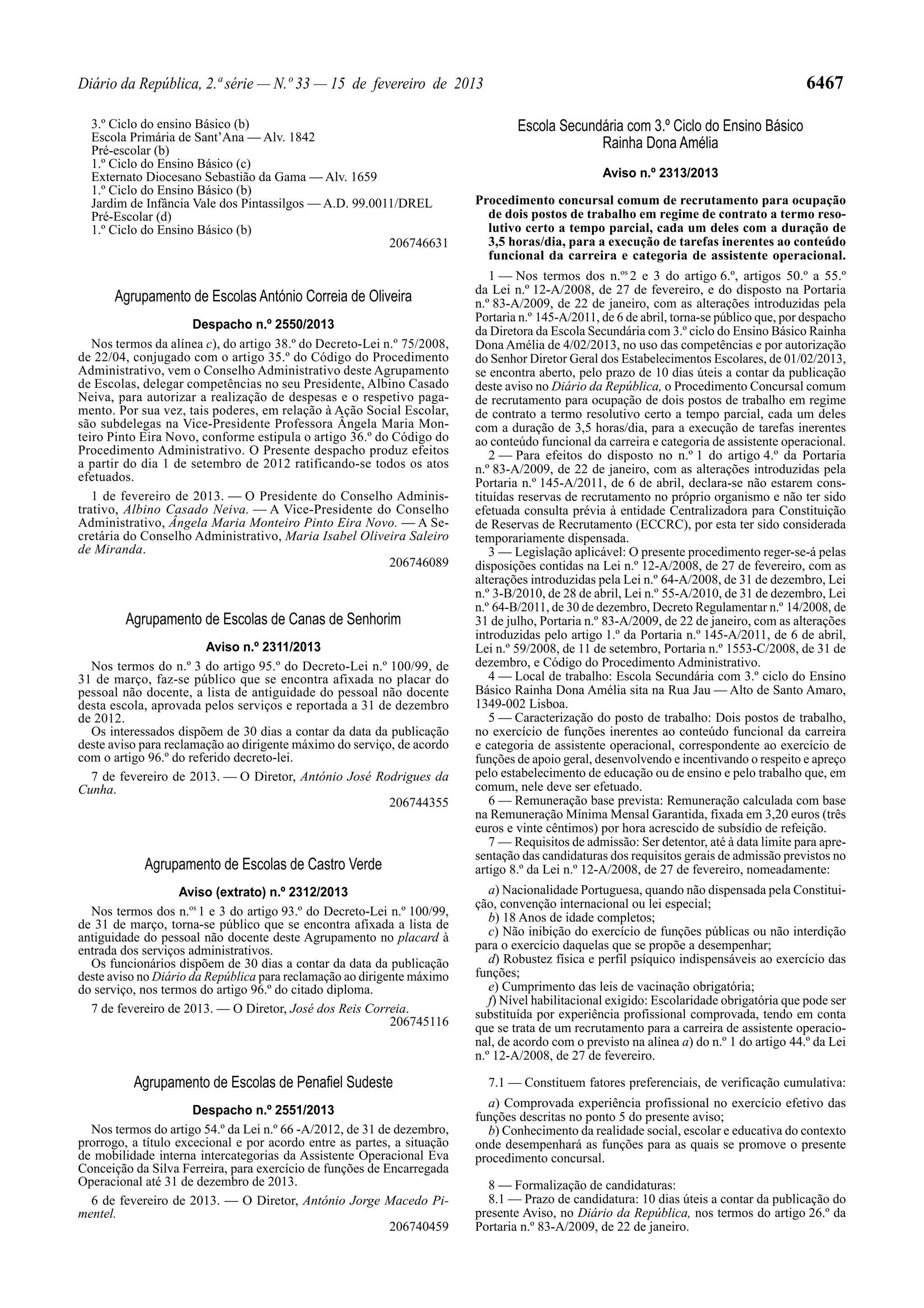 Este documento anuncia a abertura de um concurso para preenchimento de dois postos de trabalho em regime de contrato temporário na Escola Secundária com 3o Ciclo do Ensino Básico Rainha Dona Amélia. Os requisitos incluem escolaridade obrigatória e experiência na área de assistente operacional. Os candidatos serão avaliados com base no seu currículo e a lista final de classificados será afixada na escola após o período de audiência dos interessados.