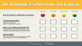 O documento lista os responsáveis pelos cultos e atividades da Igreja Adventista Cruz Alta em janeiro e fevereiro de 2015, incluindo um pedido do pastor para enviar fotos de cultos de oração e avisos sobre um evento de 40 dias de oração, um mega líder para jovens e um evento sobre saúde no dia 7 de março. Também fornece dados sobre a realidade espiritual de crianças e adultos da igreja.