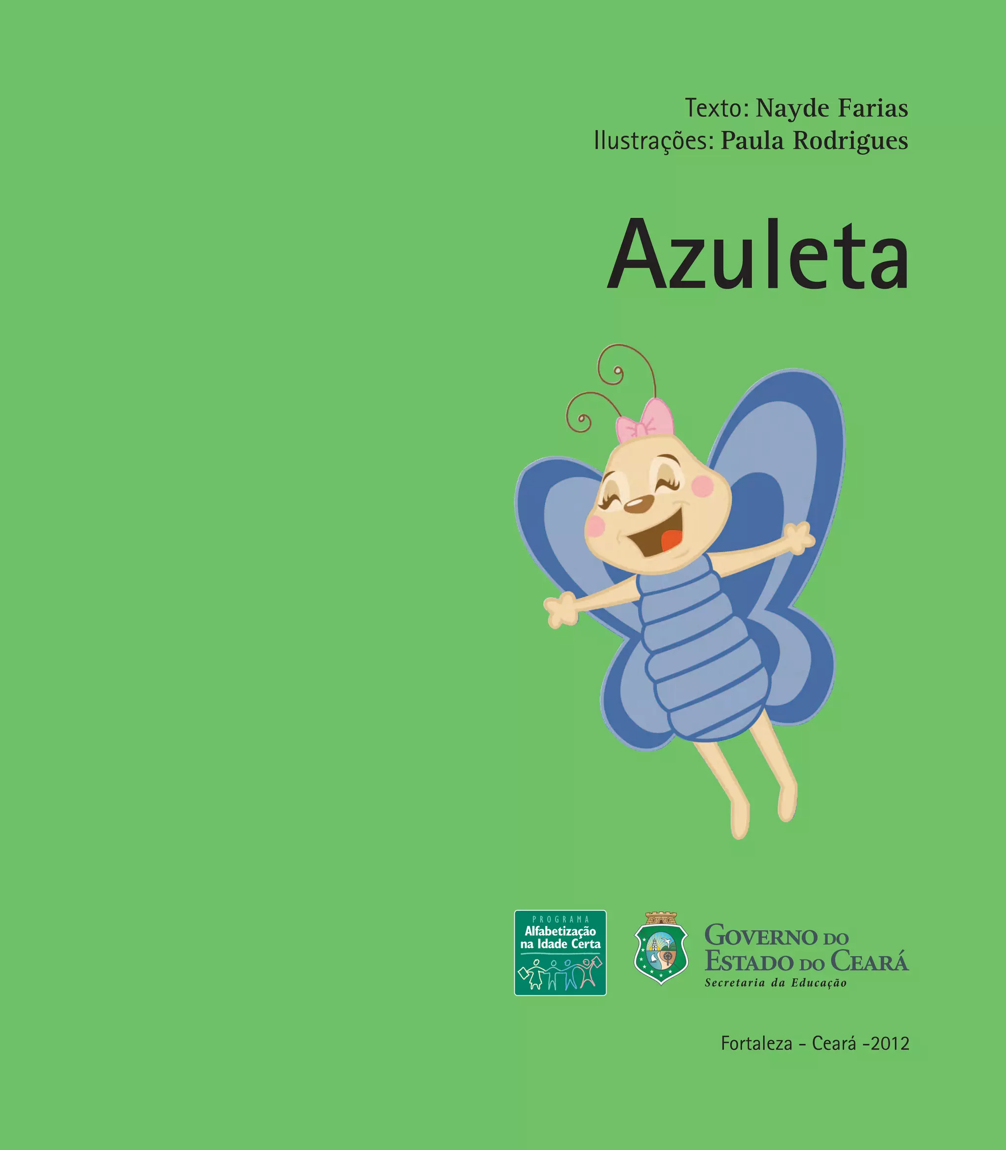 Este documento apresenta a história da borboleta Azuleta, que não se sentia feliz por ser toda azul. Ela acaba aprendendo que cada um tem a sua cor certa e que a alegria vem de dentro, ao amar a si mesmo. O texto é ilustrado por Paula Rodrigues e escrito por Rosenaide Farias de Oliveira para incentivar a autoaceitação e o amor próprio.