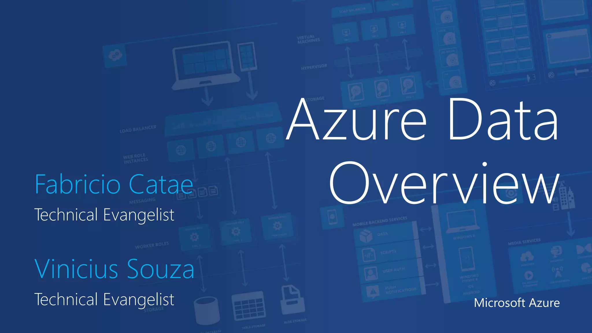 O documento apresenta os principais serviços de dados do Azure, incluindo máquinas virtuais, SQL Database, DocumentDB, Redis Cache e armazenamento. Ele discute as diferenças entre SQL e NoSQL, com exemplos de DocumentDB e tabelas do Azure. Por fim, aborda serviços avançados como StorSimple, Azure Search e SQL Data Warehouse.