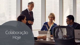 O documento discute como as tendências digitais estão mudando a forma como as pessoas trabalham com mais pessoas trabalhando remotamente e informações sendo compartilhadas mais livremente. Também descreve como o Office 365 aborda as necessidades de colaboração de diferentes gerações fornecendo ferramentas como o SharePoint, Teams, Yammer e Outlook.